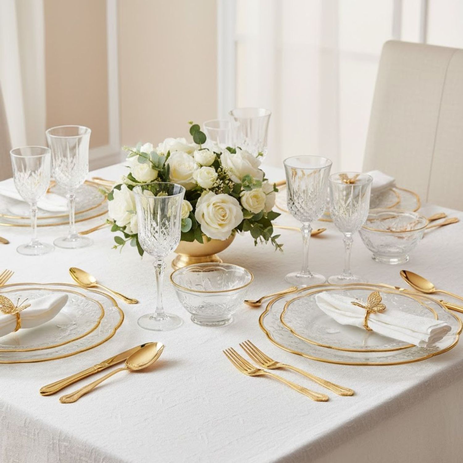 Transforme sua mesa em um cenário de elegância e encanto, este conjunto de 12 peças em cristal combina a sofisticação dos detalhes dourados com a leveza e a beleza de um design inspirado na natureza, apresentando delicados relevos de borboletas e folhagens. Escolha perfeita para criar uma mesa posta elegante e memorável em seus momentos mais especiais.