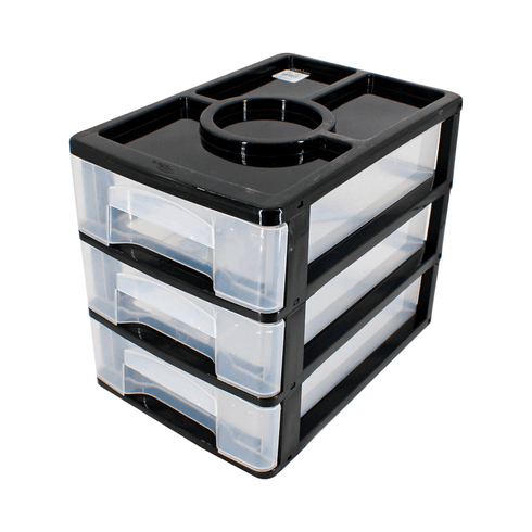 Gaveteiro 3 gavetas 30x24x20cm plástico preto Arcaplast