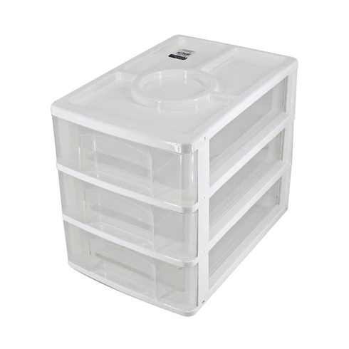Gaveteiro 3 gavetas 30x24x20cm plástico branco Arcaplast