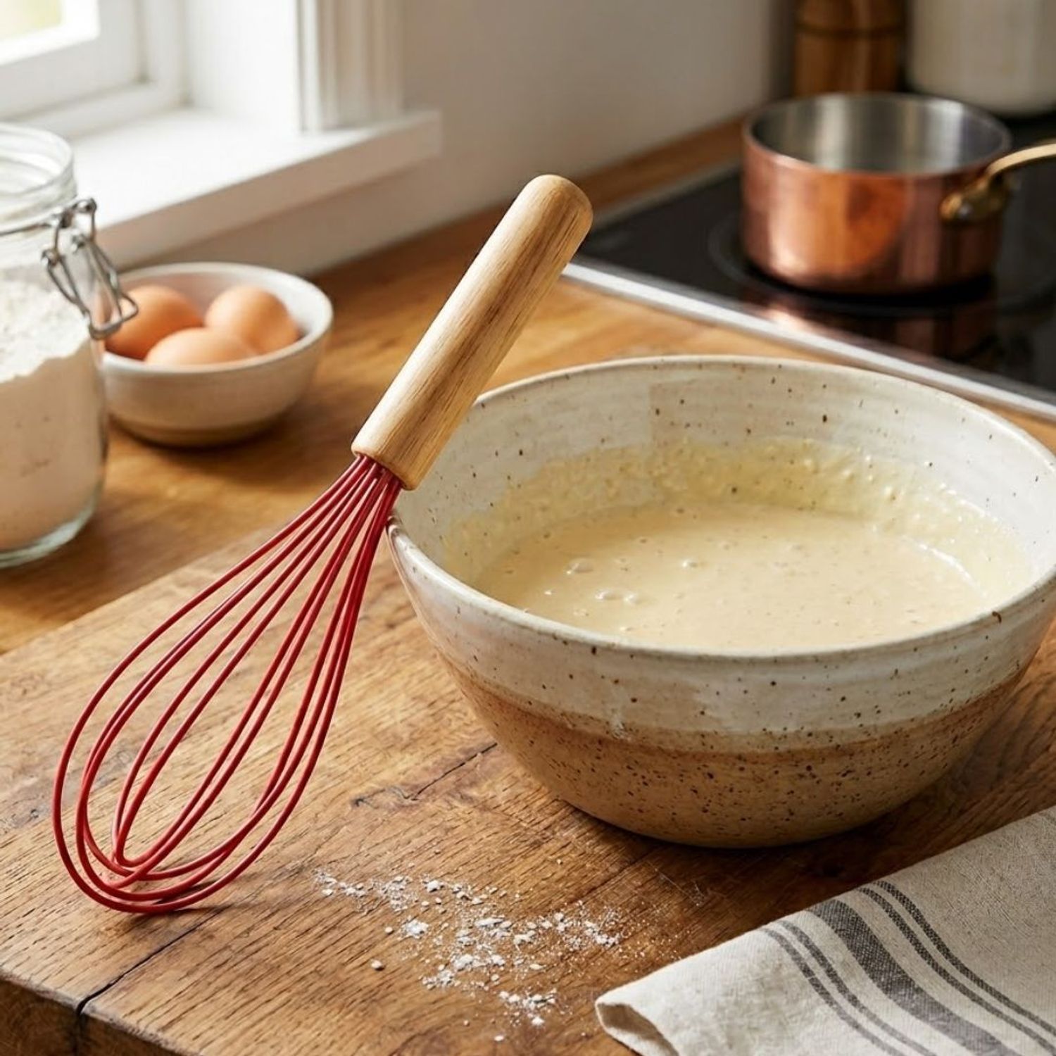 O segredo para receitas perfeitas está nos detalhes, esse batedor combina a leveza do bambu com a eficiência do silicone, proporcionando um manuseio confortável e resultados impecáveis, seja para bater claras em neve ou misturar molhos delicados.