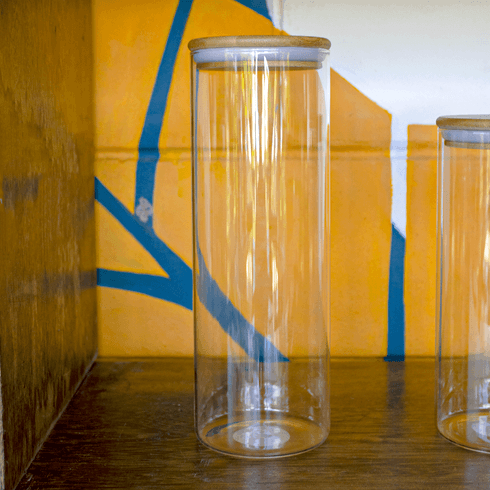 Pote de Vidro Quadrado com Tampa Bambu 1,1L DCasa