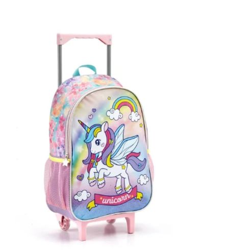 Kit escolar infantil unicórnio mochila com rodinhas + lancheira + estojo Seanite