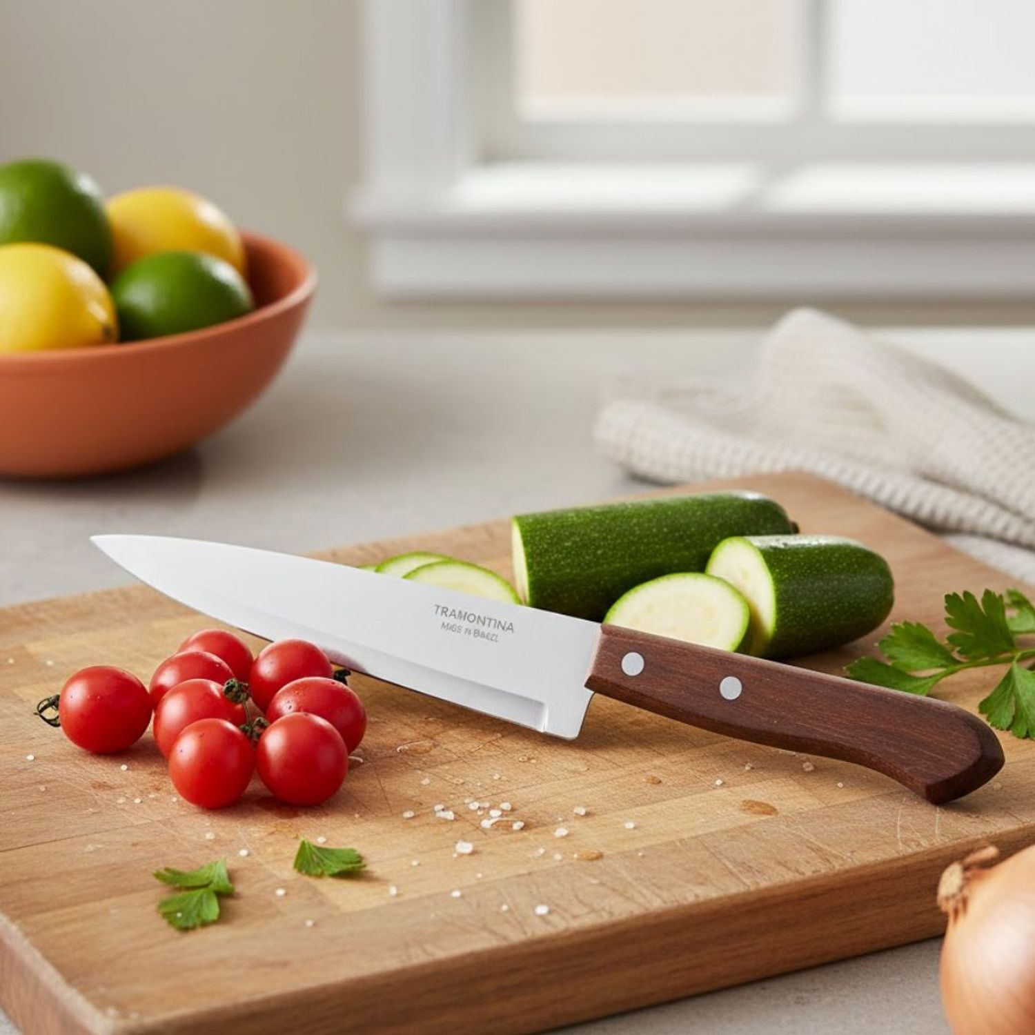 Eleve o nível do seu preparo na cozinha com a Faca Tramontina Dynamic, unindo a tradição do cabo de madeira ao desempenho do aço inox, esta peça de 7 polegadas é a ferramenta versátil que faltava para o seu dia a dia, seja para limpar peixes, cortar carnes ou picar legumes com precisão.