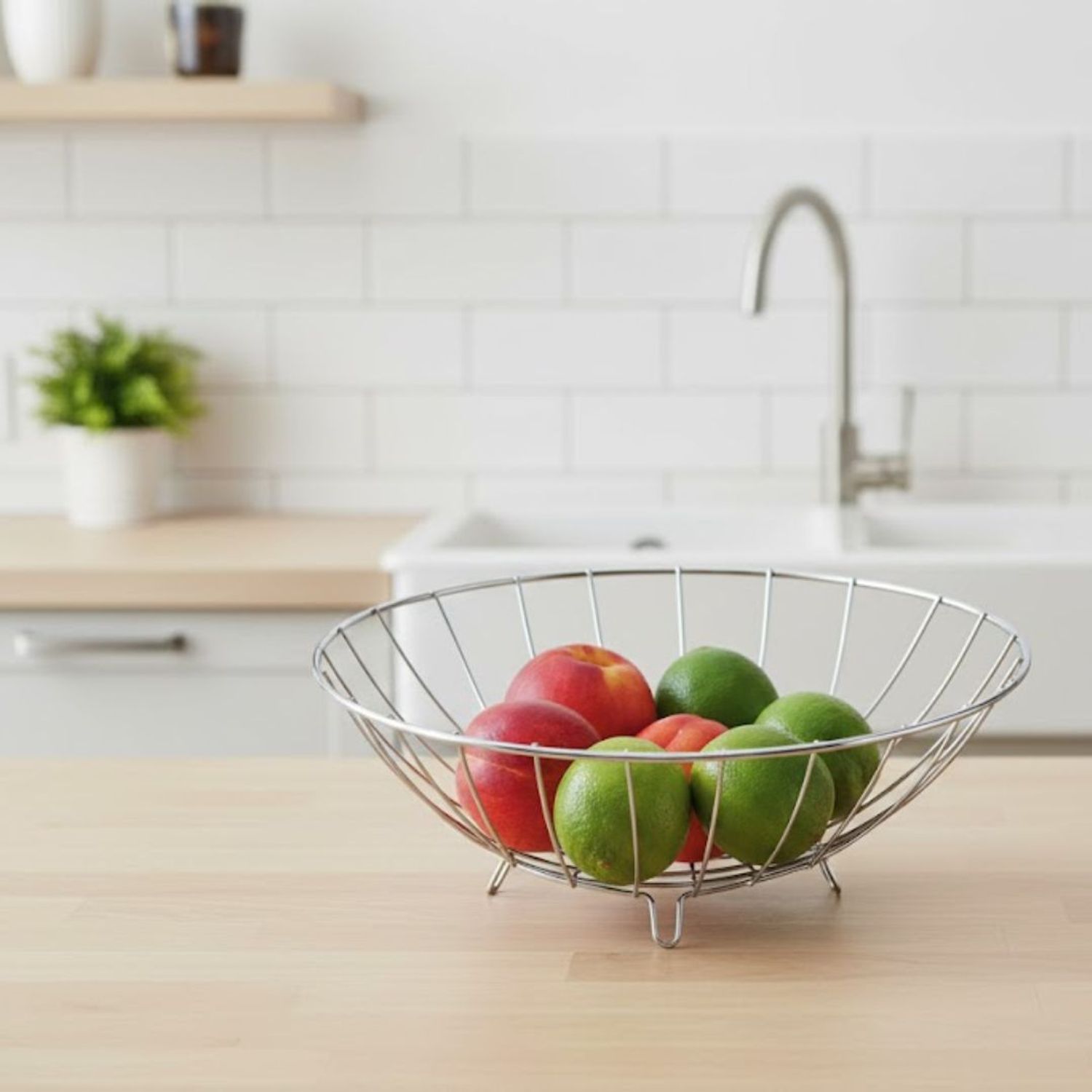 Estilo e elegância: Com acabamento cromado, a fruteira adiciona sofisticação à decoração da sua cozinha.