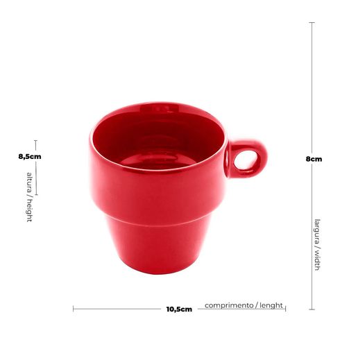 Xícara para chá em cerâmica vermelha empilhável 210ml Lyor