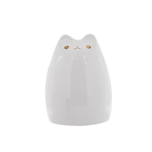Gato decorativo em cerâmica branca 12cm Moas