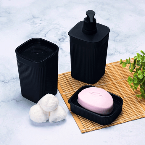 Porta sabonete líquido plástico 420ml classic frisos preto Plasútil