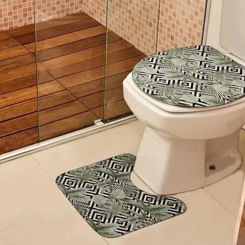 Jogo tapete para banheiro 2 peças folhagens verde Tapetes Júnior