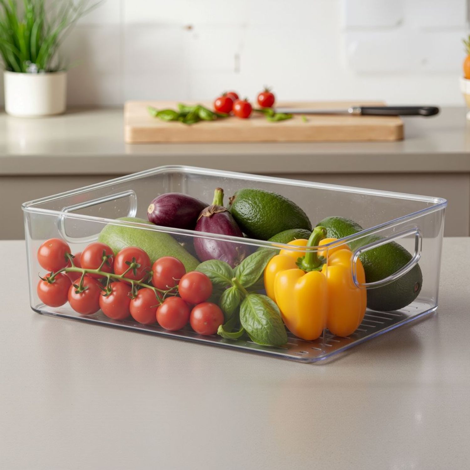 Design Inteligente: Possui alças laterais integradas que facilitam o manuseio e o transporte, mesmo em prateleiras altas.