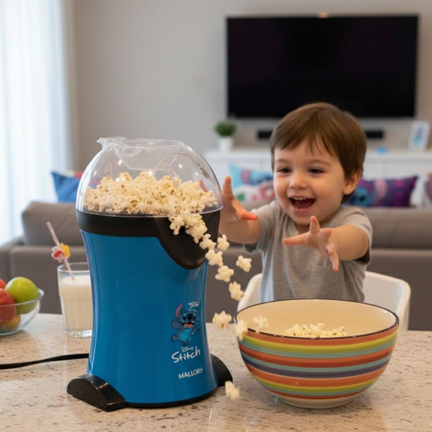 Design Encantador e Compacto: Com o adorável Stitch estampado, esta pipoqueira adiciona diversão e exclusividade à sua cozinha, seu design compacto garante que ela estará sempre à mão para aquele desejo súbito de pipoca.