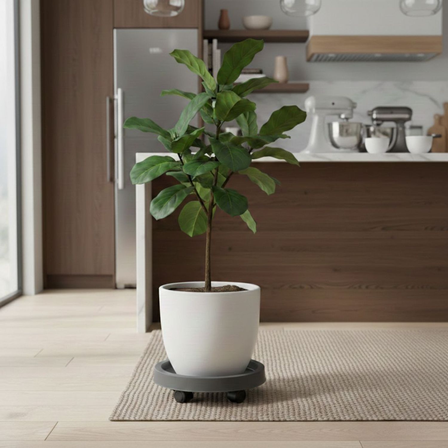 Mobilidade Total: Equipado com 4 rodas multidirecionais, oferece estabilidade e giro suave para deslocar seus vasos ou utensílios para onde desejar.